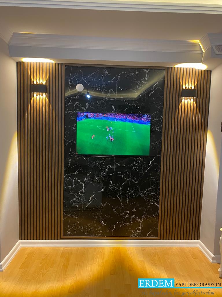 TV arkası çıta modelleri, Televizyon ünitesi arkası duvar çıtası modelleri, TV Ünitesi duvar çıtalama modelleri, oturma odasında zaman geçirenler için önemli bir uygulamadır. Oturma odasında bir odak noktası oluşturmaya gelince, Erdem Dekor Mimari Tasarımlar her zaman yanınızdadır: Televizyonlar devasa sanat baskılarına ve zarif şöminelere sahip, TV'siz aşamalı oturma odaları harika görünse de, oturma odalarımızın %99'unun televizyon etrafında toplandığı gerçeğini yansıtmıyorlar.